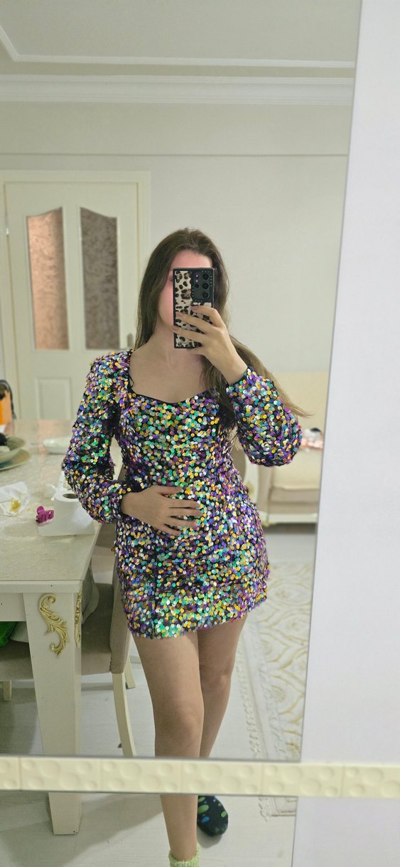 etiketli, alımlı gösteriyor s yazıypr ama m yede rahat olur#payetlielbise #zaraelbise #zarapayetli elbise