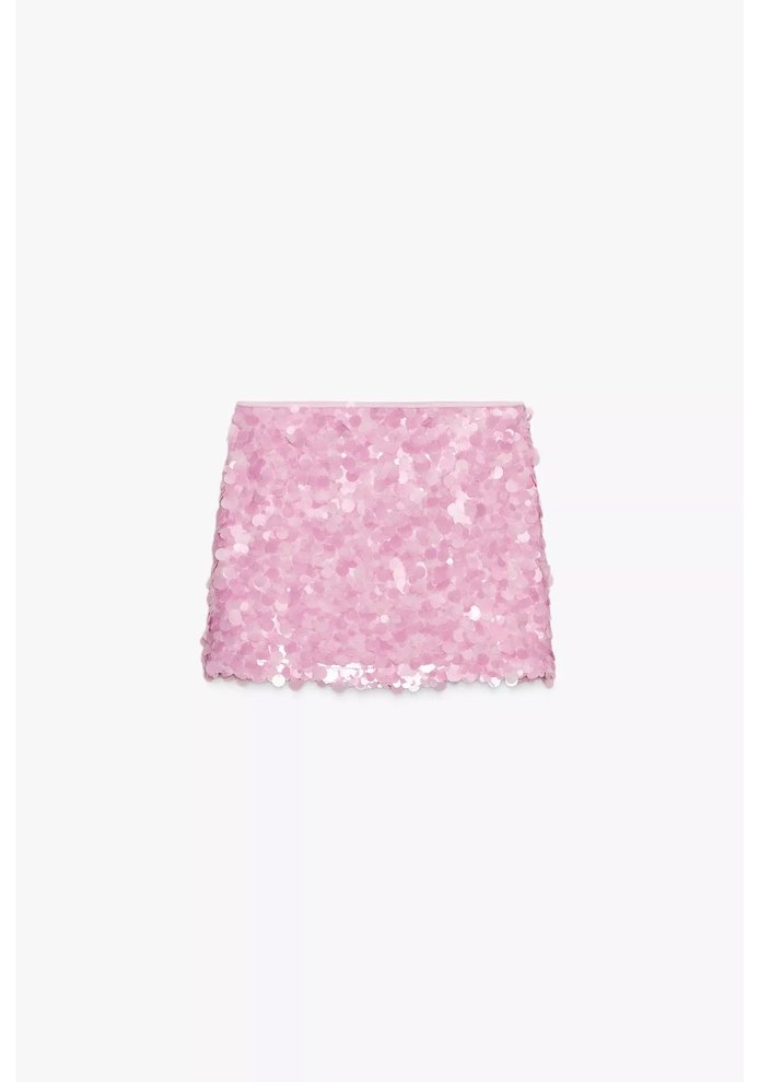 Pullu kısa etek. İç astarlı. Dikişte gizli yan fermuarlı. Bol kalıp sıfır ve etiketli