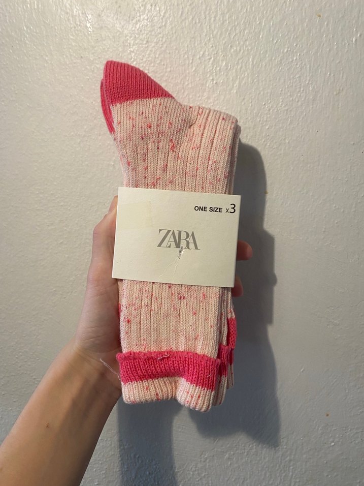 ZARA Pembe Bağlama Desenli Kalın Çorap