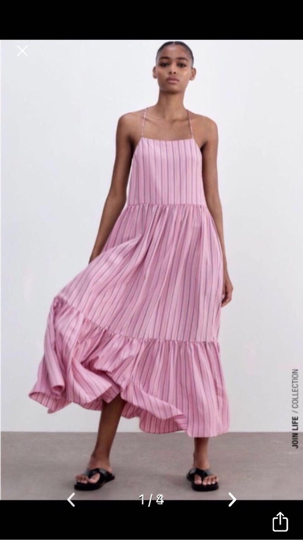 Zara Pembe Çizgili Uzun Pilili Kadın Elbise