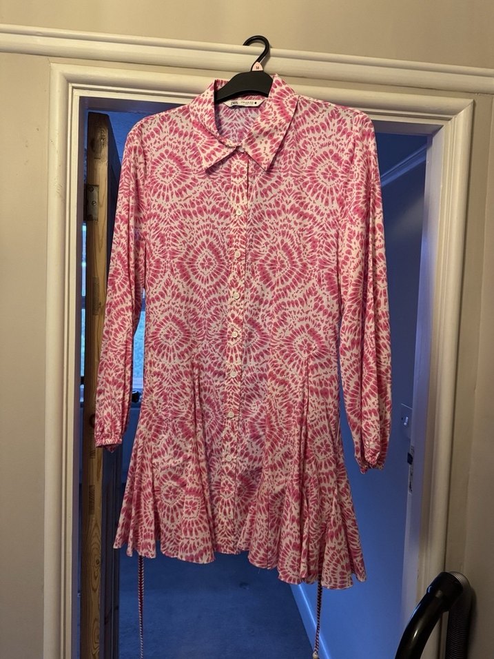 Zara Pembe Etnik Desenli Kuşaklı Mini Elbise