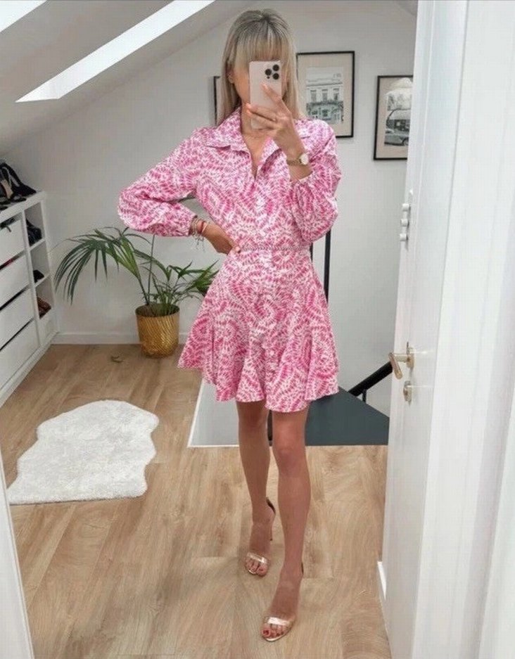Zara Pembe Etnik Desenli Mini Gömlek Elbise - M Beden
