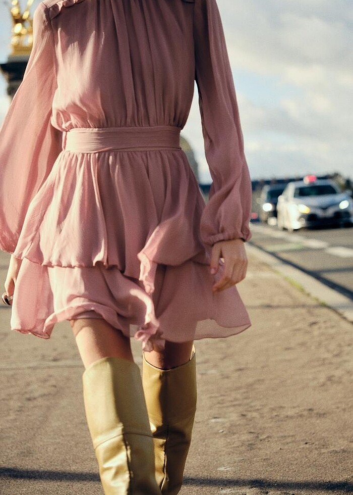 Zara pembe renkli elbise #yeni#etiketli#zara#pembe#renkli#kısa#mini#elbise#uzun#kollu#fırfırlı#tül