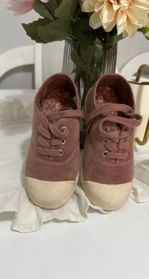 Pastel pembe süet kız çocuk spor ayakkabısı, yumuşak dokusu ve desensiz tasarımıyla trend ve rahat bir stil sunar.