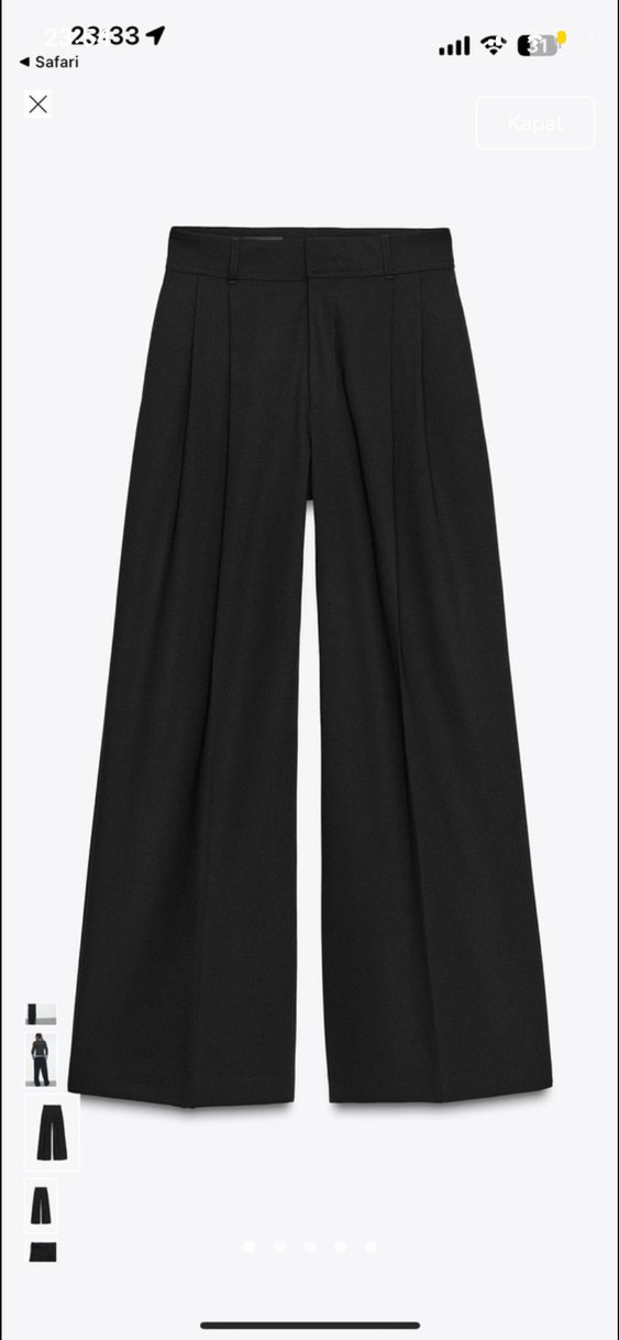 Siyah, pilili, midi boy kadın kumaş pantolon. Normal kesim ve ipeksi dokusu ile ofis için uygun.