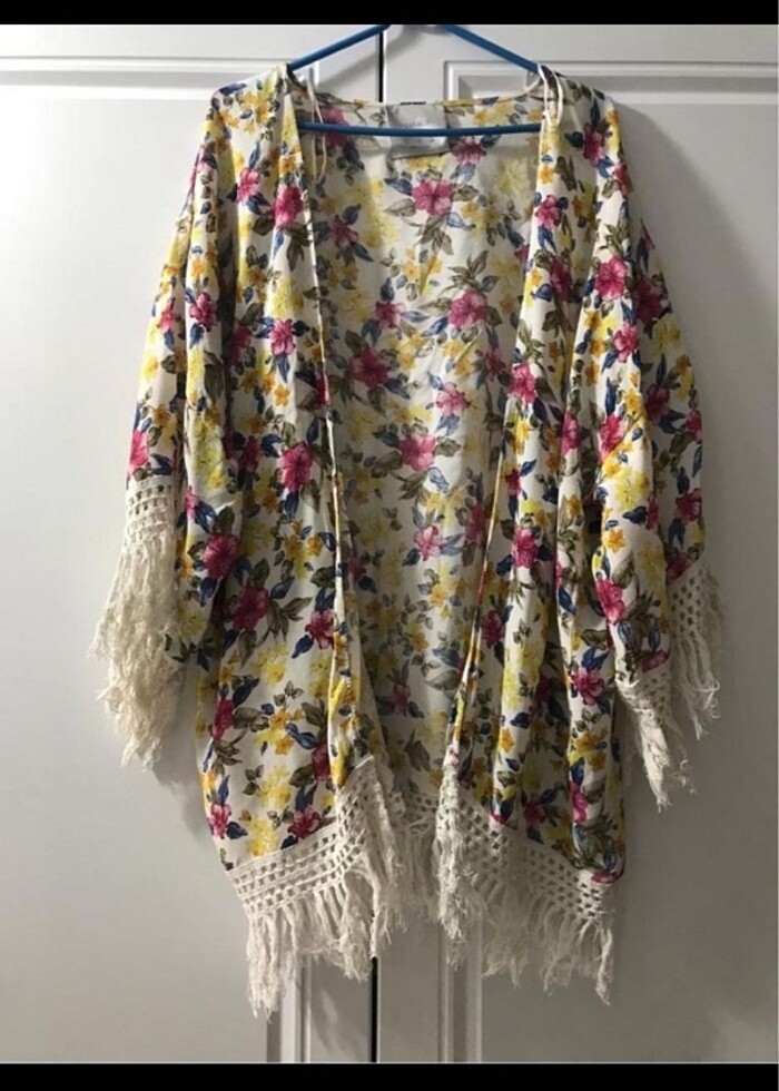Zara Marka plaj kıyafeti dışarda da giyilebilir yanlar cepli şık spor bir ürün .arka püskül kısmında ufak bir sökülme var kolayca halledilebilir başka bir kusuru yok boy kumaşa kadar 88 püskülle beraber 95 cm iki koltuk altı arası 45 cm tamamı 90 cm M bedendir