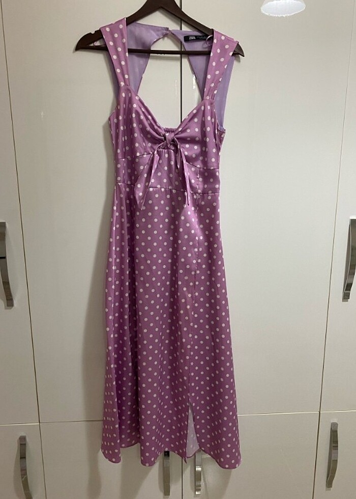 Zara puantiyeli saten mor elbise s beden 1 kere giyinildi