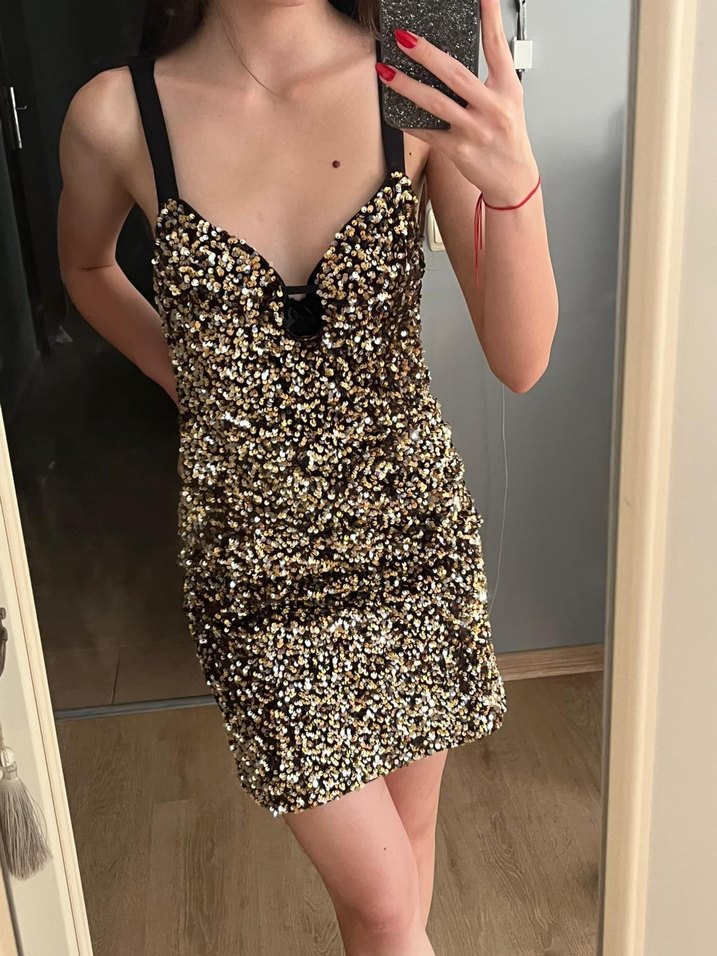 Zara pulluPayetli Mini Abiye Elbise