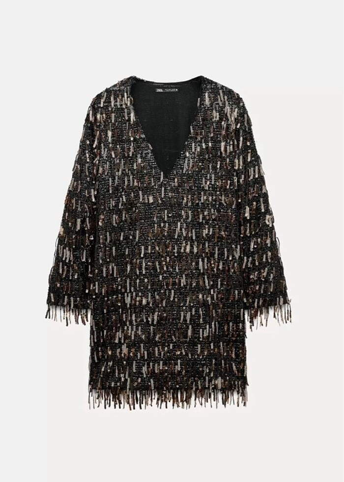 Zara püsküllü pullu mini elbise. Pembe altın rengindedir pulları 1 kez giyildi. Uzun kolludur astarlıdır