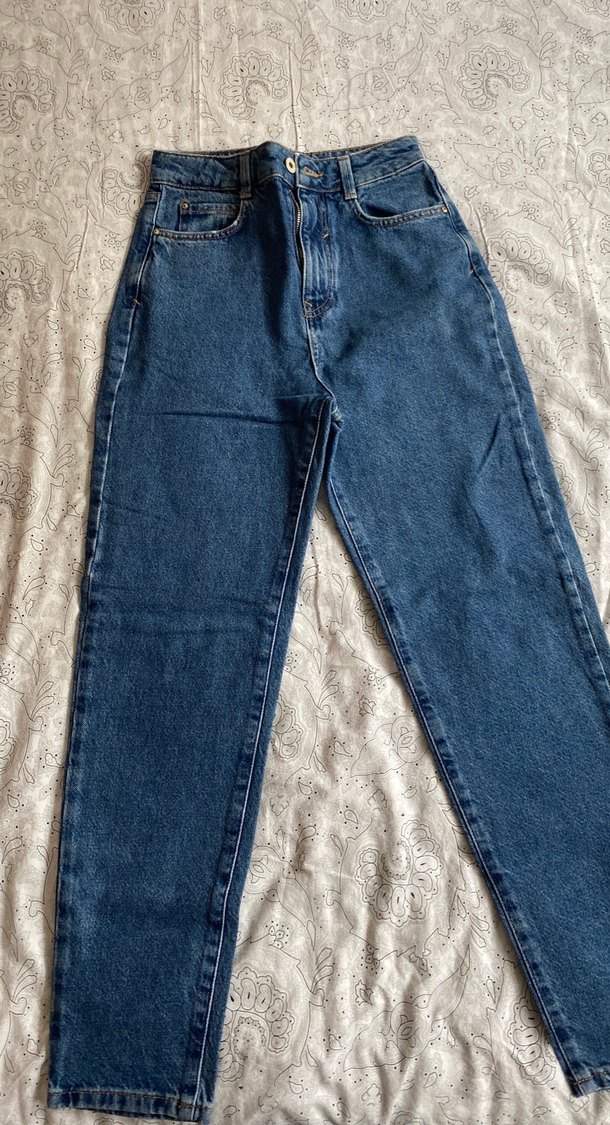 Zara marka mavi renk normal boyda, desen içermeyen kadın denim pantolon. Günlük kullanıma uygun, zahmetsiz şıklık sunar.