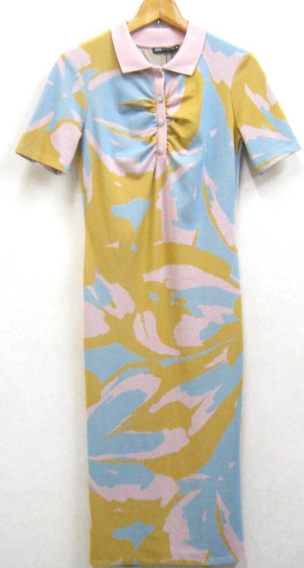Zara desenli, kısa kollu, yakalı ve ön kısmı drapeli uzun kesim triko elbisedir. Modern ve avangard tarzı yansıtır.