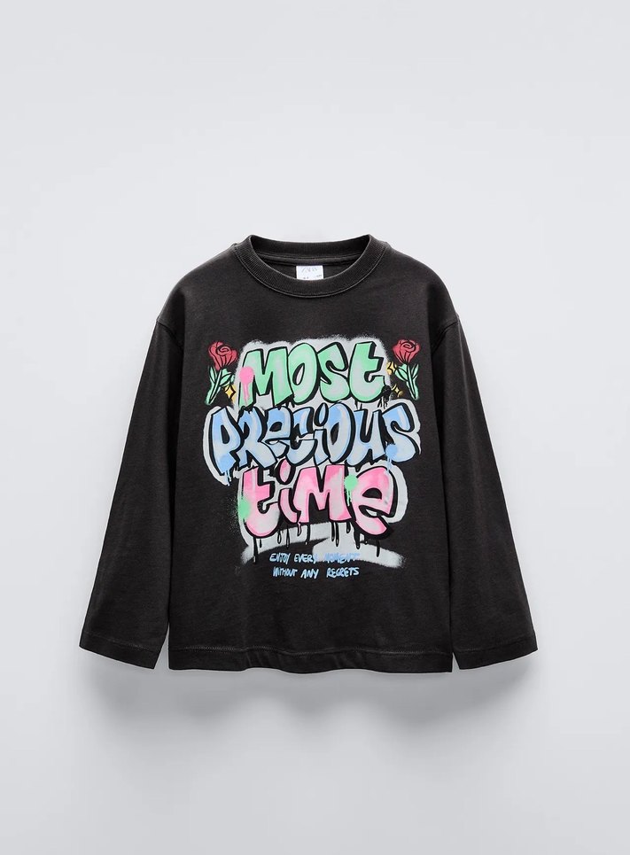 ZARA Renkli Baskılı Kız Çocuk Uzun Kollu Tişört