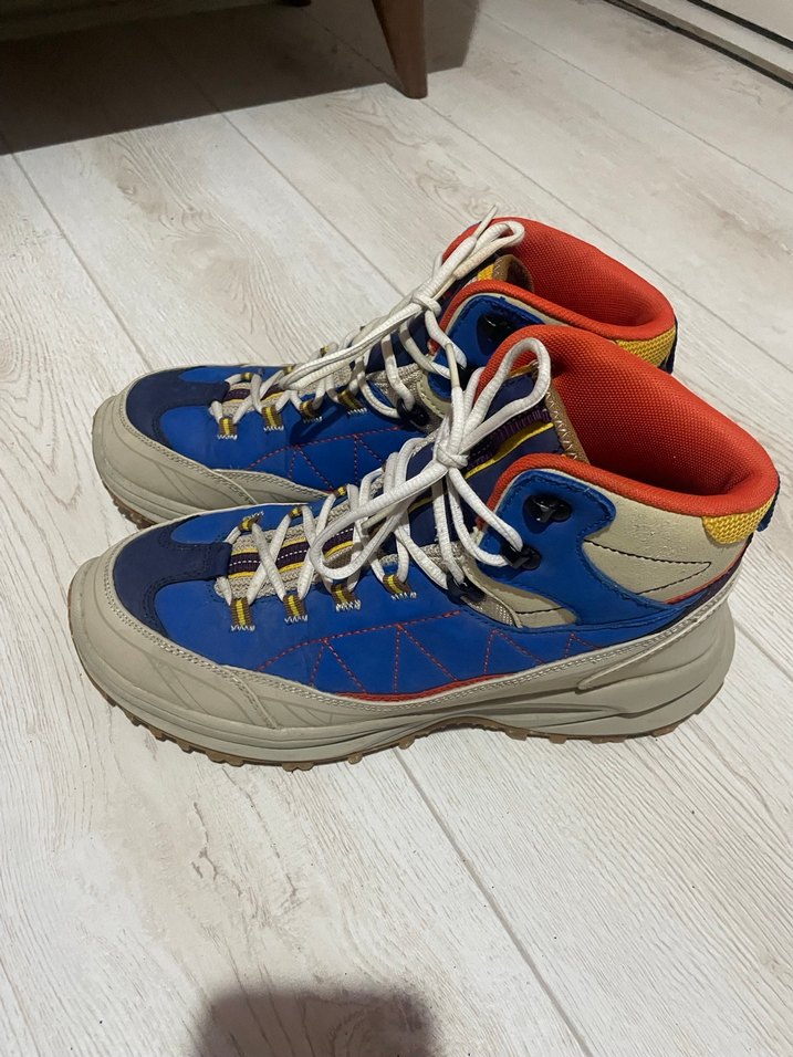 Renkli erkek outdoor ayakkabılar, kauçuk tabanlı ve velcro bantlıdır. Sokak stili ve rahat athleisure görünüm için uygundur. Konforlu ve kullanışlıdır. Satıştaki spor ayakkabı orijinaldir. Kullanılmış bir üründür. Giyilmeye engel hiçbir kusuru yoktur. Kondisyonu fotoğraflarda görüldüğü gibidir. Profilimdeki diğer ilanlarıma da göz atabilirsiniz.