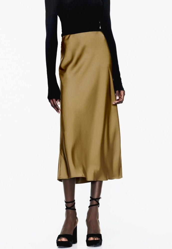 Zara S beden saten etek.Renk yağ yeşili.Sıfır üründür.SON FİYATTIR.