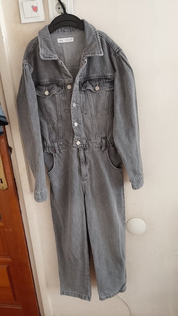 ZARA S bedenlere Gri Denim Kadın Uzun Tulum