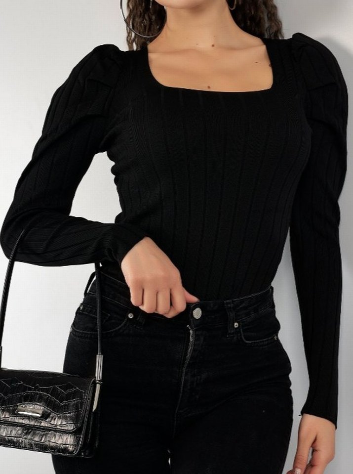zara S ve M beden prenses kol triko kare yaka bluz