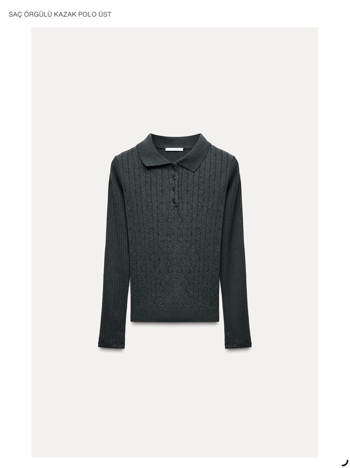 ZARA Saç Örgülü Gri Polo Yaka Kazak