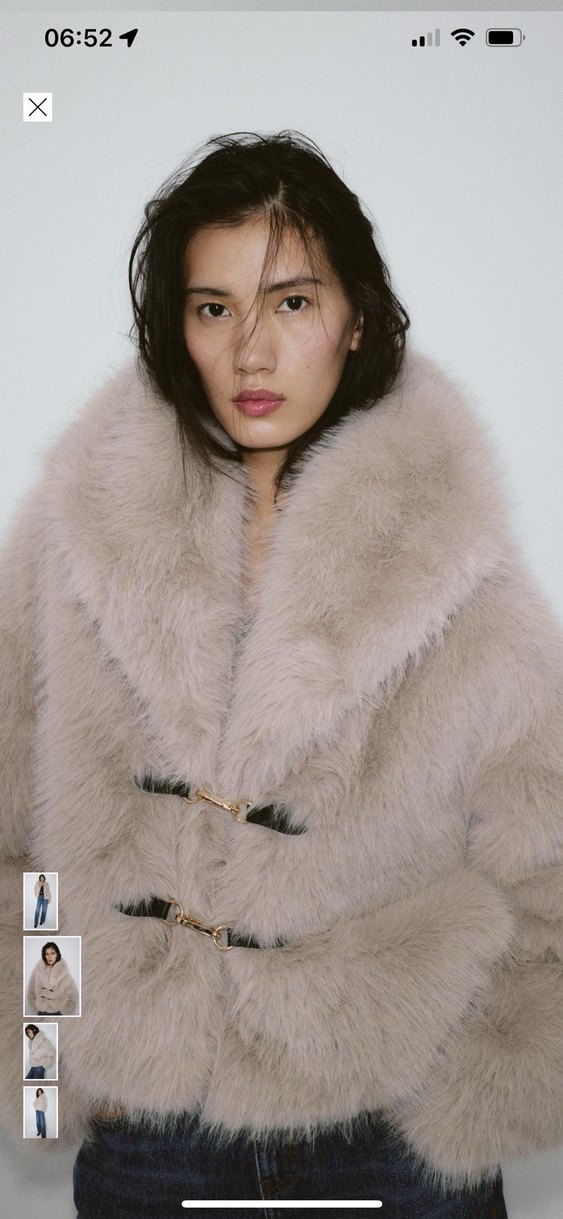 Zara sahte kısa Bej Kadın Kürk Detaylı Midi Mont