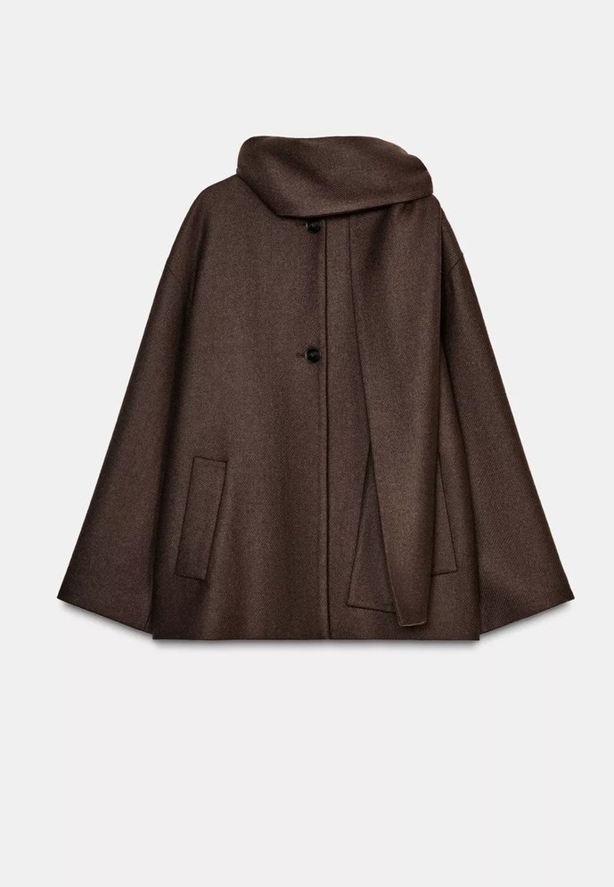 Zara şal detaylı yün kaban