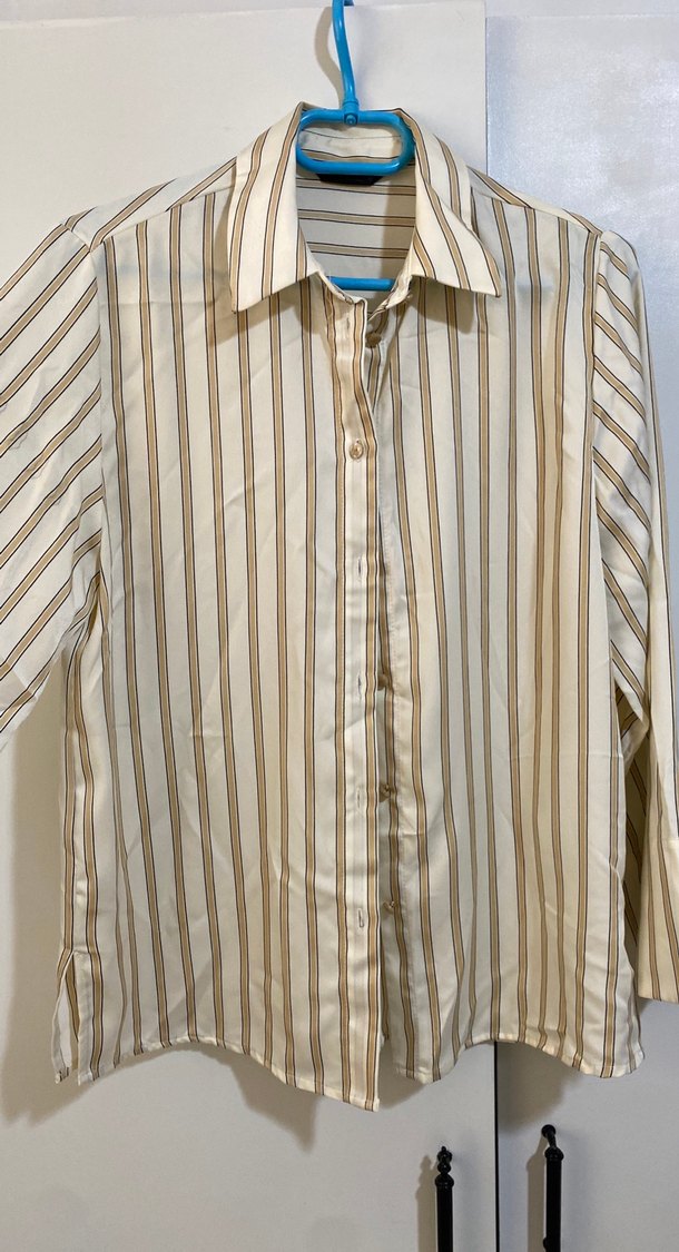 1defa kullandım kusuru yoktur. Sarı düğmeli kadın gömlek çizgili, kolları da bol kesim ve saten dokuludur