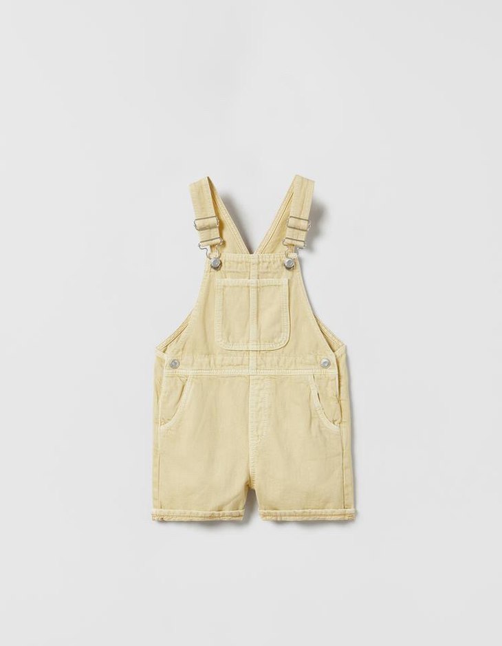 Zara Sarı Denim Erkek Çocuk Askılı Şort Tulum