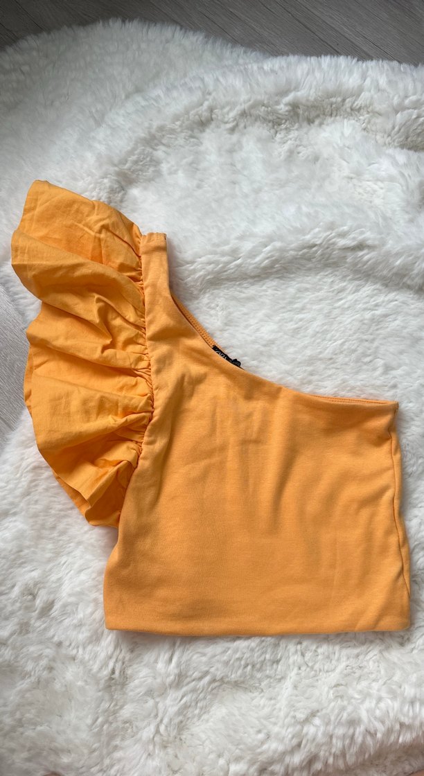 Zara Sarı Fırfırlı Tek Omuz Bluz