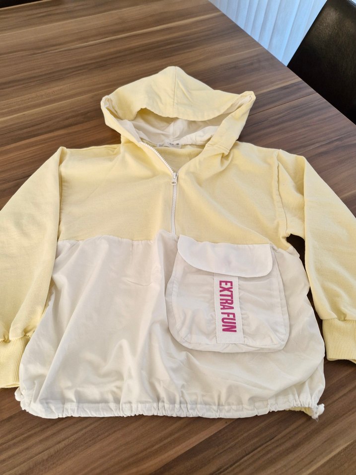 Zara pastel sarı kapüşonlu sweatshirt, uzun kollu, bol kesim.