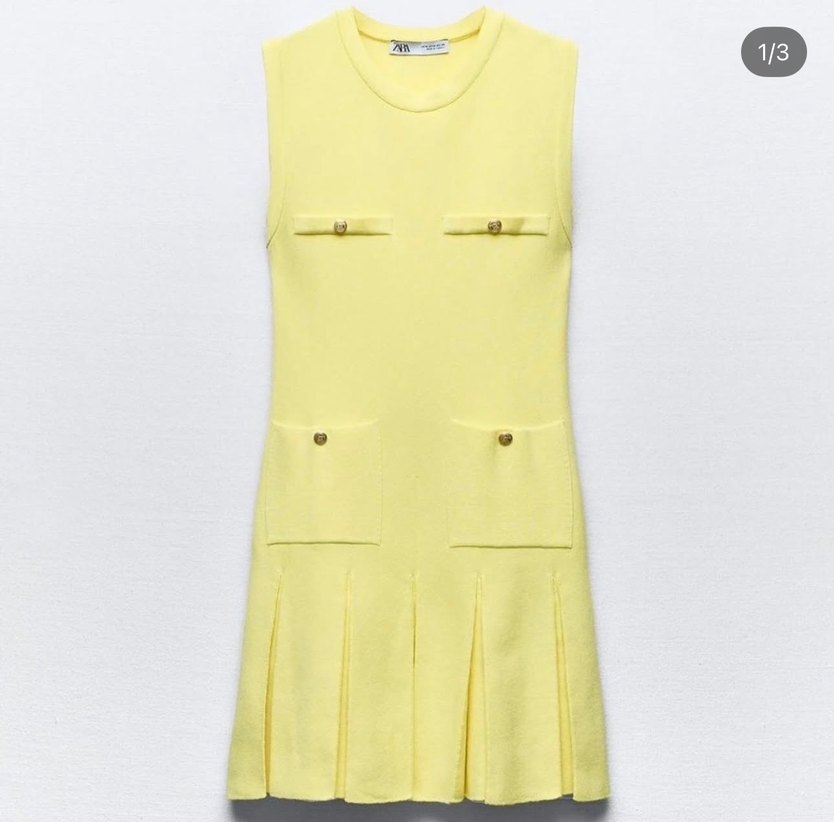 Zara Sarı Pilili Kolsuz Midi Triko Elbise