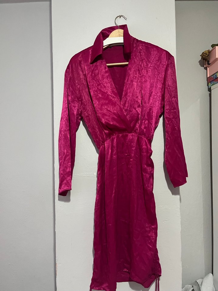Zara saten elbise Pembe Parlak Uzun Kollu Elbise