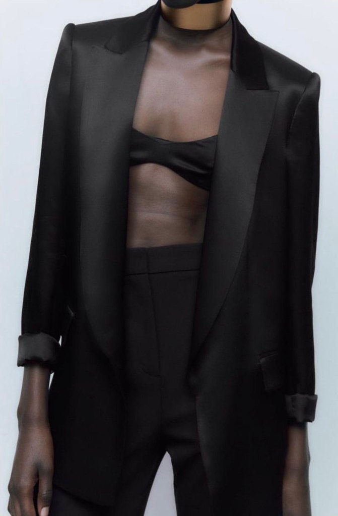 Zara Saten Siyah Kadın Blazer Ceket