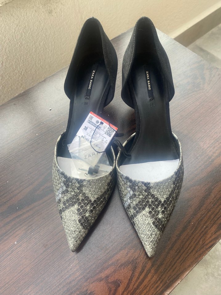 Zara Sıfır Gri Yılan Desenli Stiletto Topuklu Kadın Ayakkabı