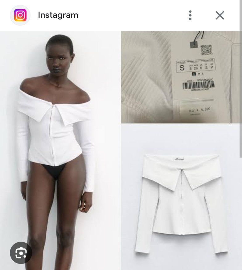 Beyaz, uzun kollu ve omuzları açık, çok şık hem bluz hem hırka tarzı. Etiketli sorunsuz. S bedenlerde tercih edebilir.