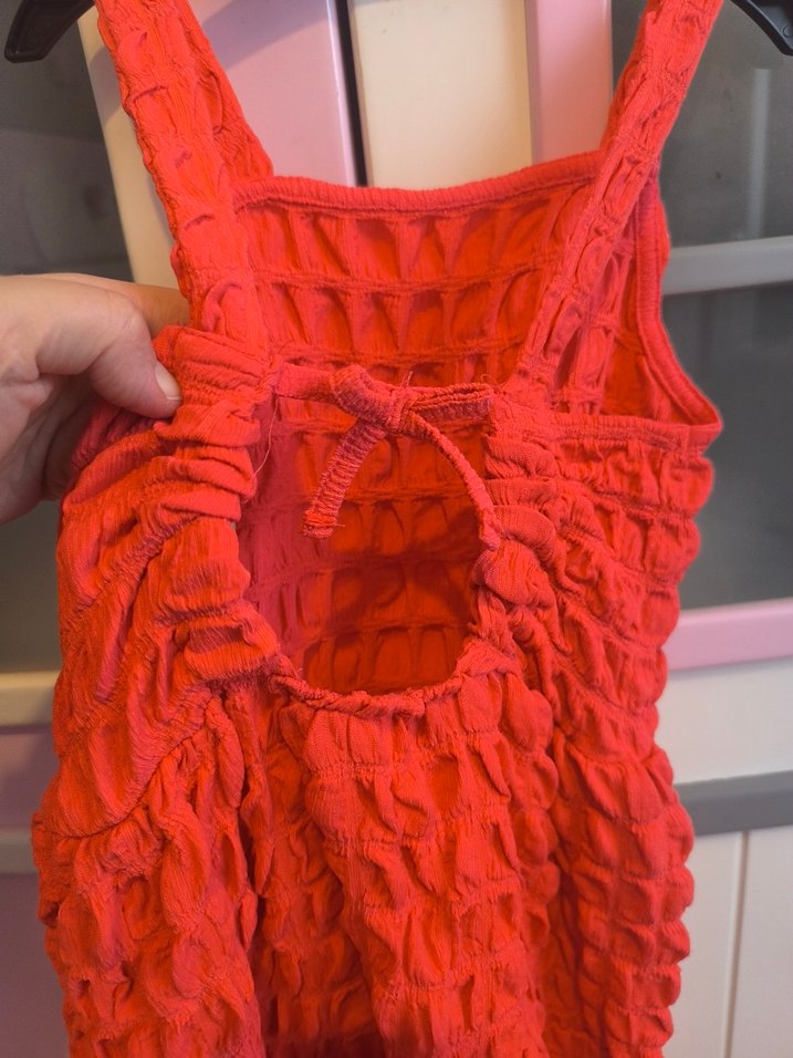 nar çicegi renginde 7 yaş sırt detaylı çok şık bir elbisedir bürumcuk kumaştır.aynisinin 9 yaşı da dolabımda satıştadır.kusursuz tertemiz iade kabul edilmez.