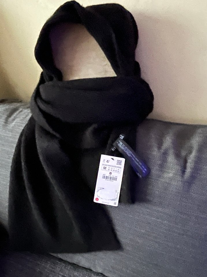 Zara marka siyah renk bütün halde bere ve atkı birarada, tek parça ürün. Etiketi üzerinde, hiç kullanılmadı. Ölçüleri sn 38cm, boy toplam 137cm, şapka kısmı 42 cm.