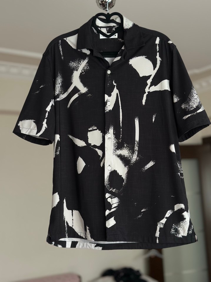Zara Siyah Baskılı Kısa Kollu Gömlek