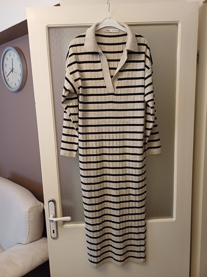 zara m beden bej siyah çizgili ince triko elbise m beden sol yan yırtmaçlı dilerseniz yırtmaç kapattırabilirsiniz