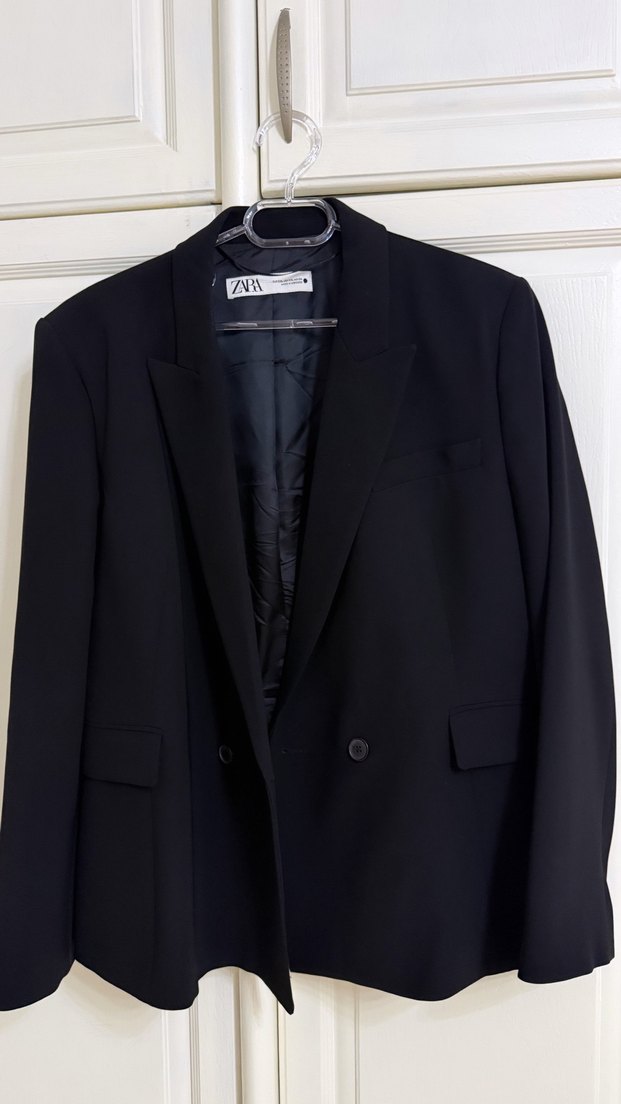 Zara siyah blazer ceket. XXL beden. Az kullanıldı hiç deformesi yok. Oversize duruşlu, hem günlük hem özel gün kombinlerinde rahatlıkla kullanılabilir.