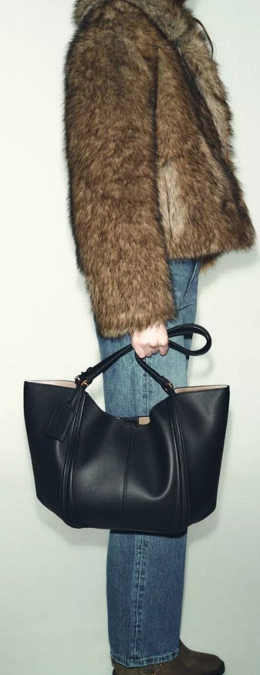 Siyah deri, Yükseklik x Uzunluk x Genişlik: 28,5 x 22 x 10 cm, dust bag (toz torbası) ile gönderilecektir