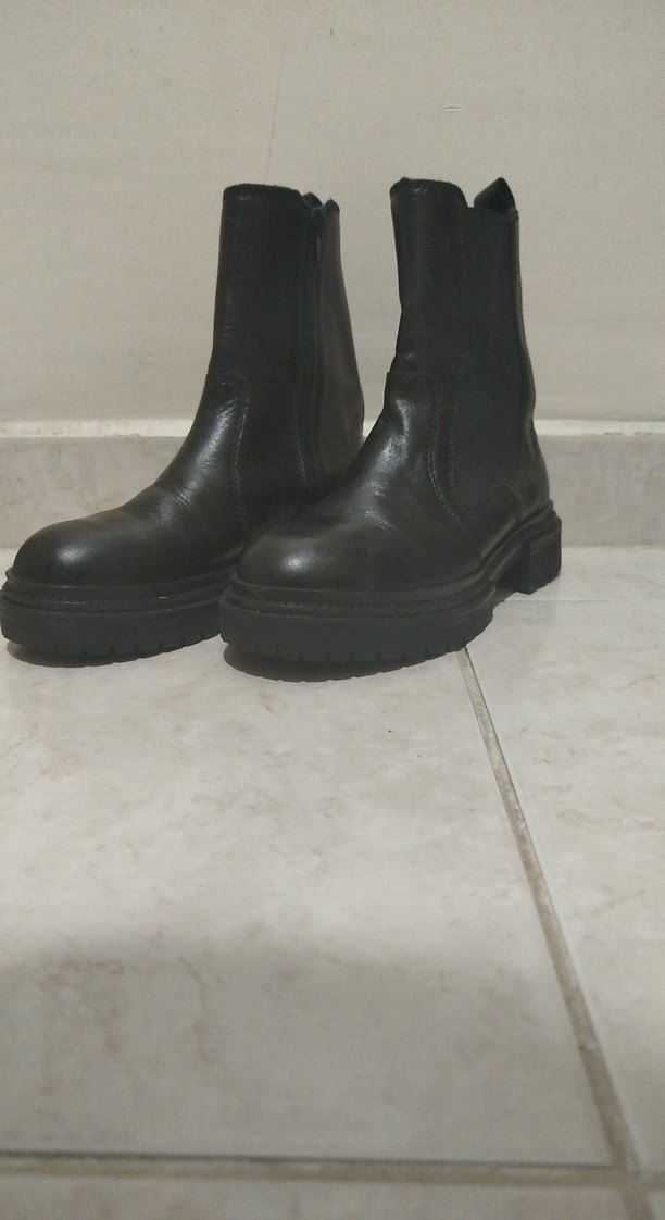 Siyah kauçuk blok topuklu botlar, goth tarzıyla sokak modasına uygun. Desensiz, kaygısız şıklık ve rock punk havası sunar.