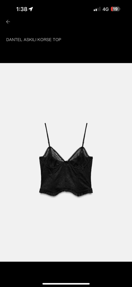 zara Siyah Dantel İşlemeli V Yaka Mini Bustier