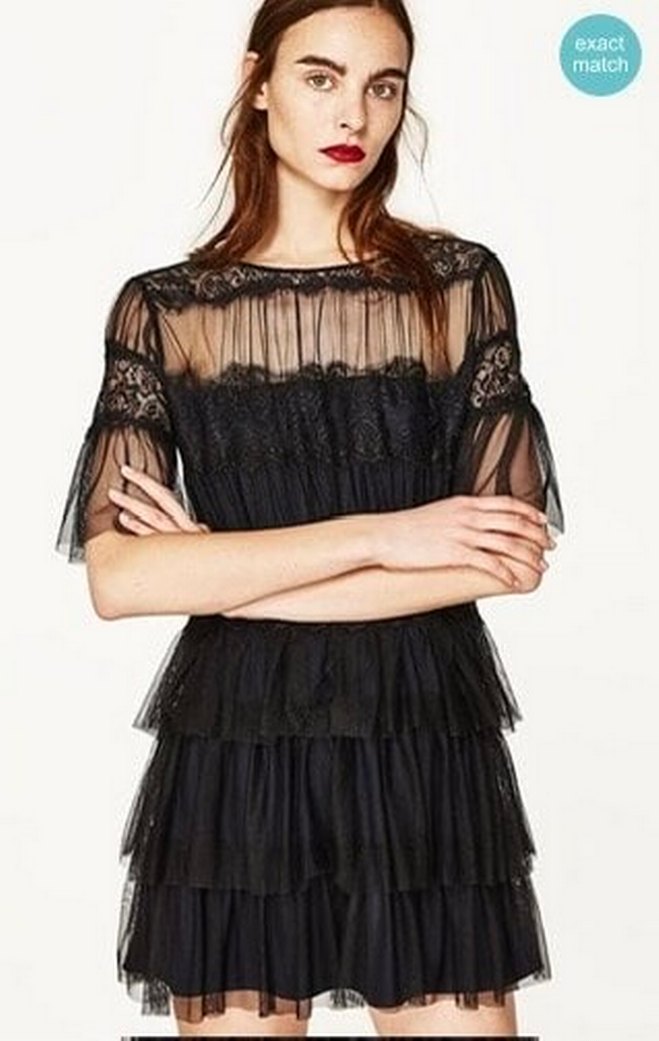 ZARA Siyah Dantel Katmanlı Mini Elbise