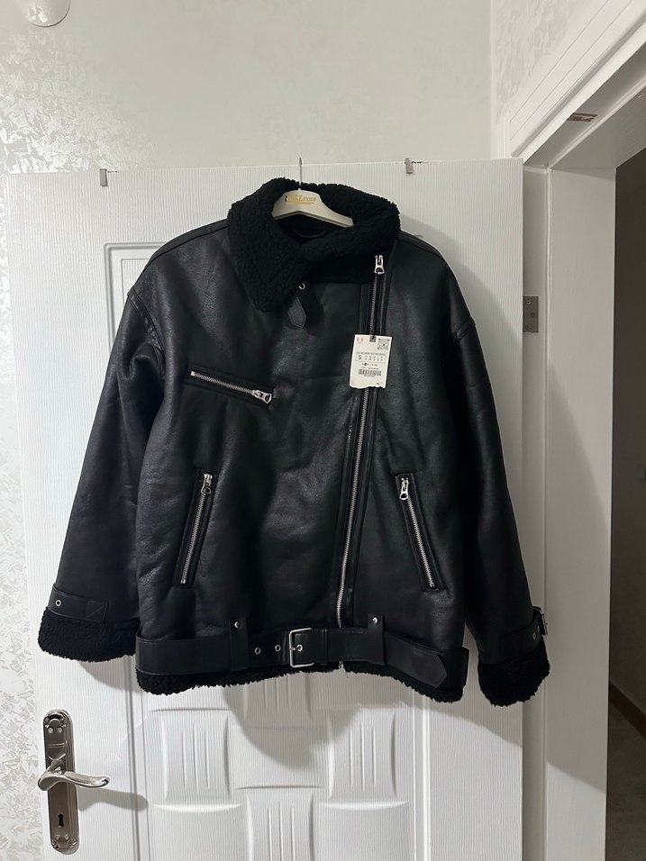 Zara Siyah Deri Biker Ceket