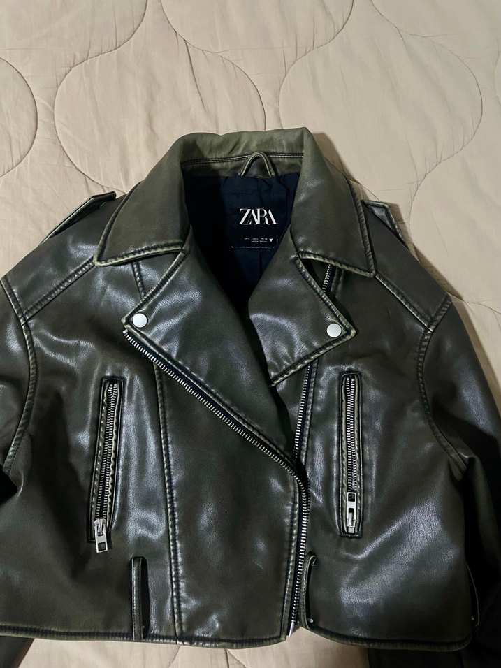 Zara Siyah Deri Biker Ceket