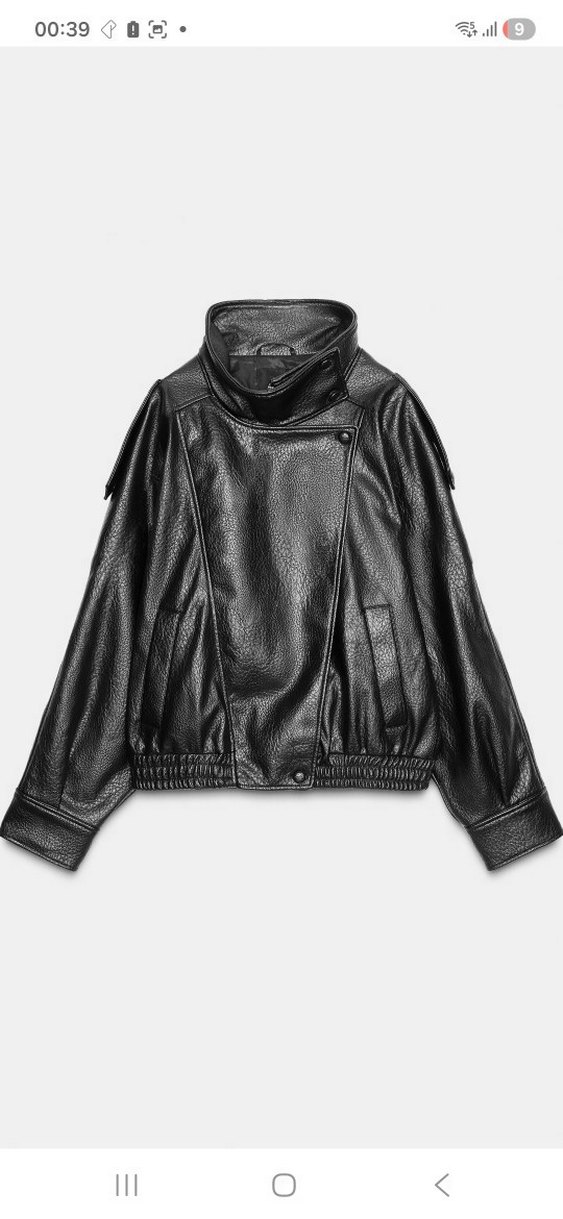 zara Siyah Deri Biker Ceket Yüksek Yaka