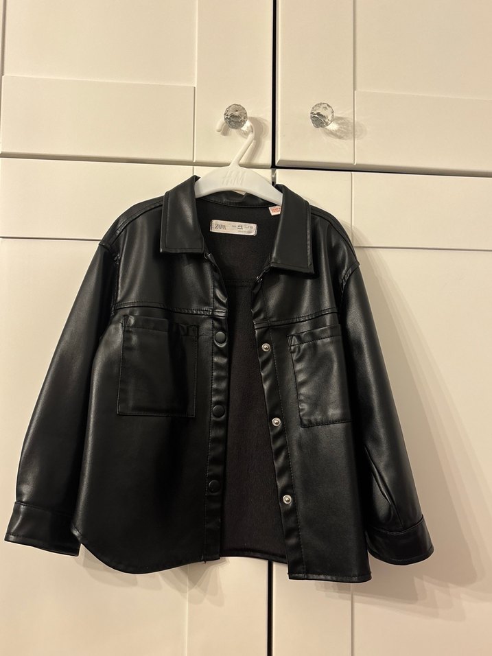 Çıtçıtlı, normal boy, uzun kollu siyah deri ceket. Gömlek model ve günlük kullanıma uygundur. İçi süet dokuludur. Çok iyi durumda ve 4-5 yaş için uygun