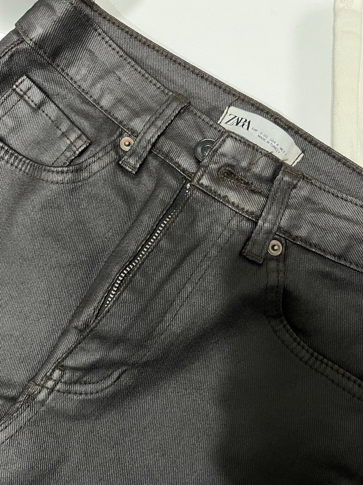 Zara Siyah Deri Fermuarlı Kadın Pantolon