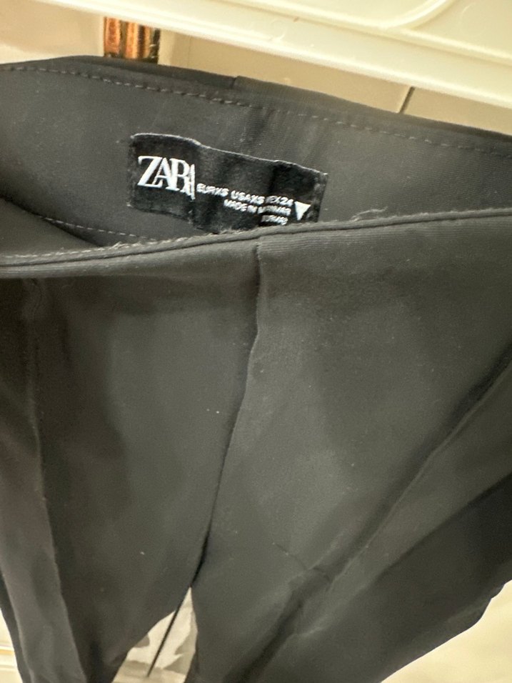 Zara Siyah Deri Fermuarlı streç Kadın Pantolon