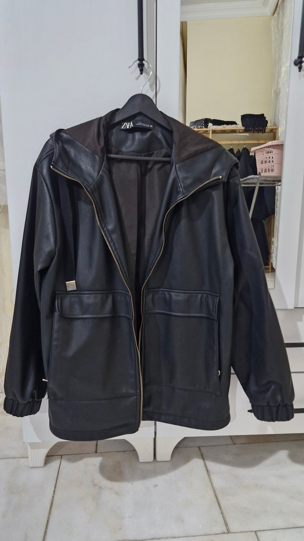 Siyah deri ceket, hafif uzun ve fermuarlı ön yapıya sahiptir. Uzun kollu, cep detaylı ve astarlı günlük sokak stili için uygundur.