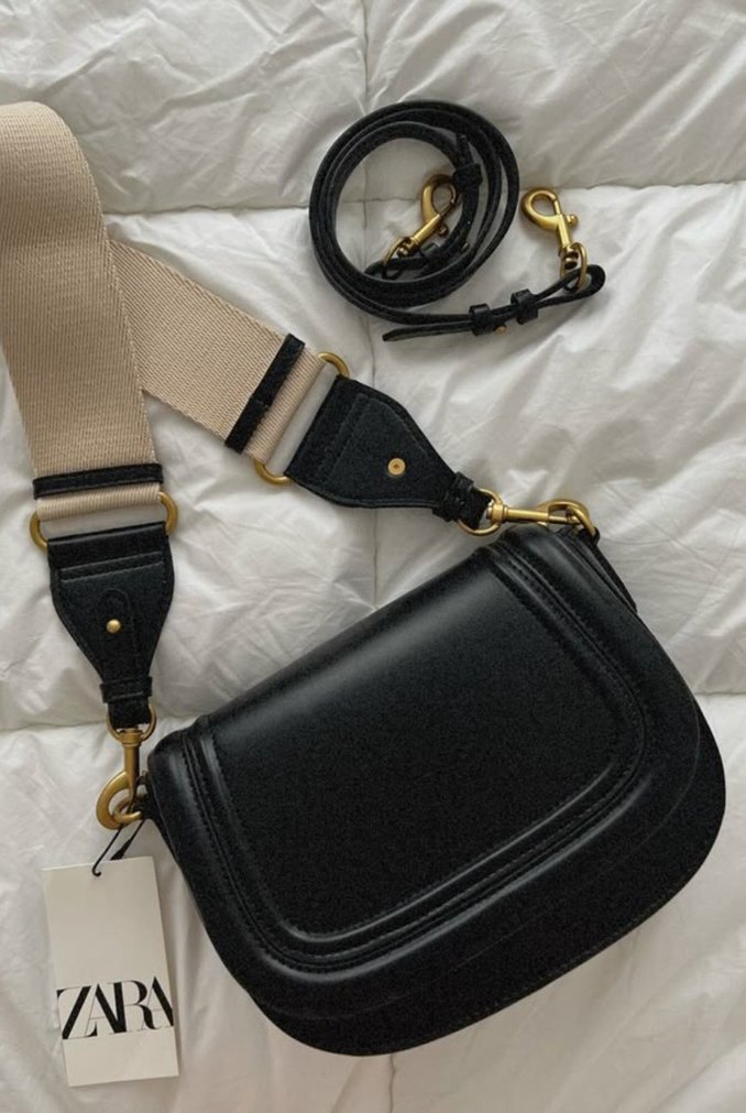 Zara siyah deri kadın omuz çantası, tokalı detay ve çıkarılabilir askıyla sokak modasına uygun ve günlük kullanım için ideal. minik bir defosu vardır orjinaldir