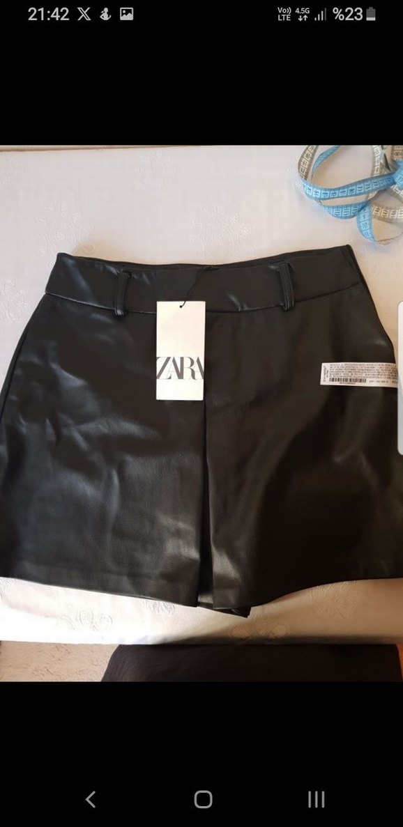 Zara Siyah Deri Mini Şort